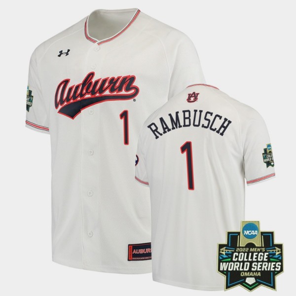 • Men's Auburn Tigers College World Series White Blake Rambusch #1 2022 World Series Baseball Jersey
