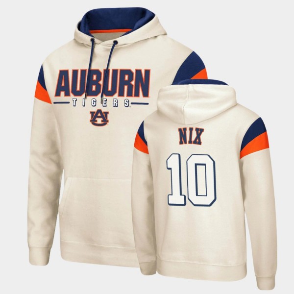 • Men's Auburn Tigers Fortress Cream Bo Nix #10 Pullover Hoodie